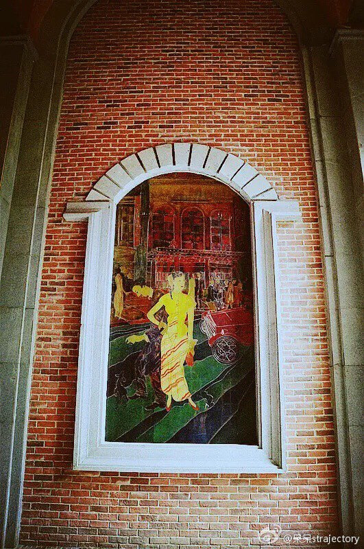 过道两边的墙上,有着古时候女子的画像,也有历史的老照片。晚上走访这里,更像是一座迷你小城堡,黑漆漆的夜里,唯有这里,透出金黄色的光芒~