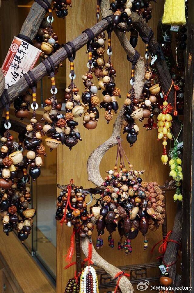 这里的人很喜欢做这样的饰品,是用不同的果子做成的。不同的果子,不同的价格,但是由于这种果子叫菩提。。。所以特别的贵~