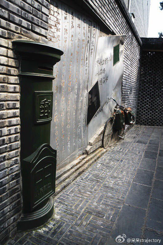 老式的邮筒,老式的自行车,黑白照片上老式的打扮和那古板的面孔,感觉一下就穿越到了那个年代,复古的味道弥漫着这个场景!