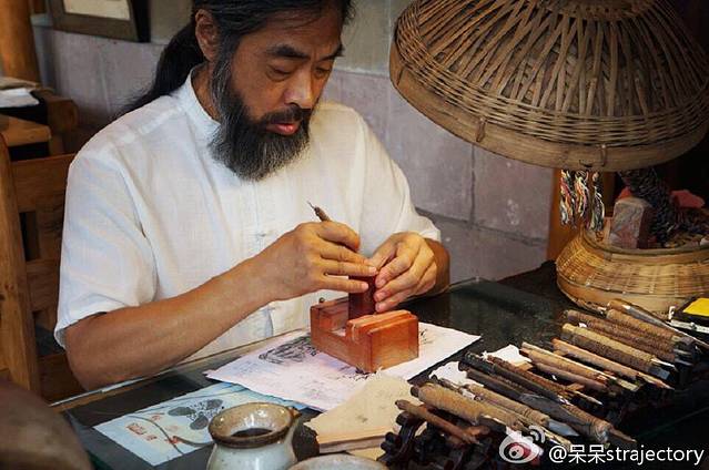 看着桌子上那一套工具,就知道师傅是非常有经验的了,我被吸引,并不是因为那些工具,或者屋子内的陈设,我被吸引过来,是因为老师傅在这一条古街上,静心雕刻的心态~