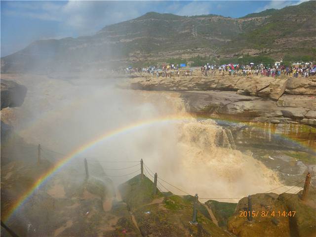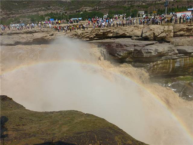 P.S.很多人会选择大巴回西安,但时间很紧,要花30元跟人拼车到宜川,然后从宜川回西安。大巴最晚说是17:40,实际上是看人发车。我去那天,他们只能赶下午三点的车,也就是2点必须往回赶!1点才到的壶口啊!!!关键是彩虹2点左右才出现的!对于这个壶口瀑布一日游,我网上看了好多好多的信息,最后发现都不靠谱的。幸好之前有备份延安中转。途径南泥湾,果然是歌唱的好听,只能说相对一路的荒山野岭而言那的确是“好地方、好风光”!难怪延安能成为是革命根据地!还有,这大巴是到陕西的瀑布,网上买票可要看清楚了。我就是不确定到那边,所以网上的优惠浪费掉了。山西那边可以下到下面看瀑布,往返临汾的车很多,从临汾回西安的火车也很多。还有,瀑布水汽很大,带件雨衣去吧~