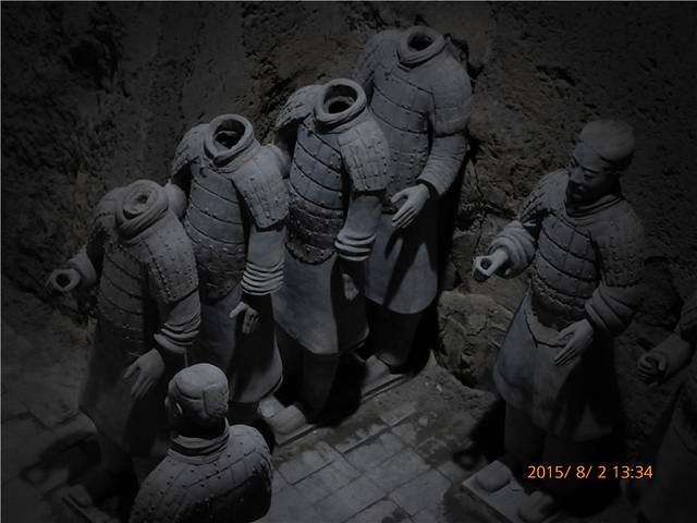 号称“世界八大奇迹之一”的秦始皇陵兵马俑——这是一个坑,这也是一个坑,那还是一个坑!卖石榴的大妈也真是的,都没熟,这么着急摘下来干嘛啊??大雁塔喷泉,世界最大的八级变频方阵,虽然我看的时候是下着暴雨——我也是醉了!