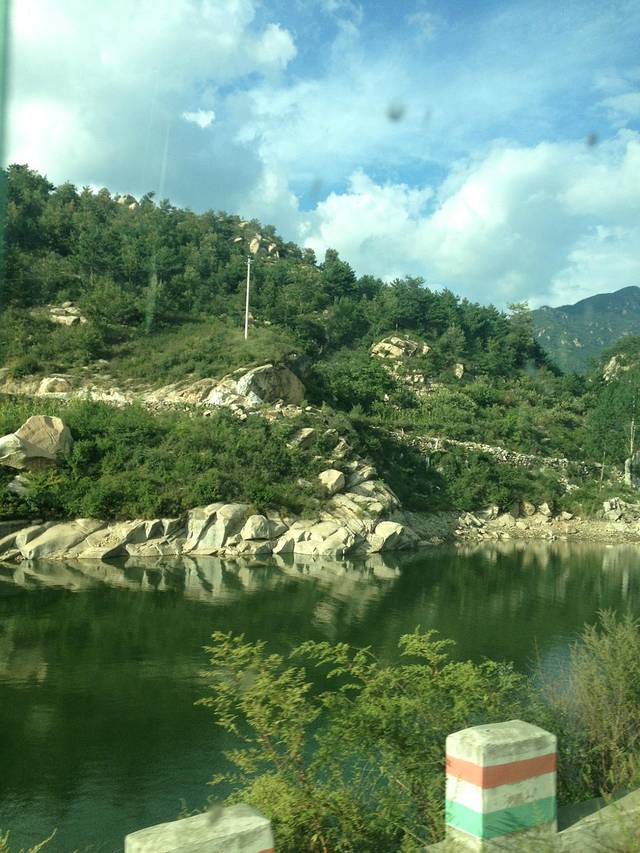 从天津站乘坐7:24-10:18的火车抵达蓟县火车站,届时有农家院安排好的面包车接车,司机会提前给你电话,告诉你接站的地点,车程长达1个半小时。花市村入口处,率先映入眼帘的是麻地水库。