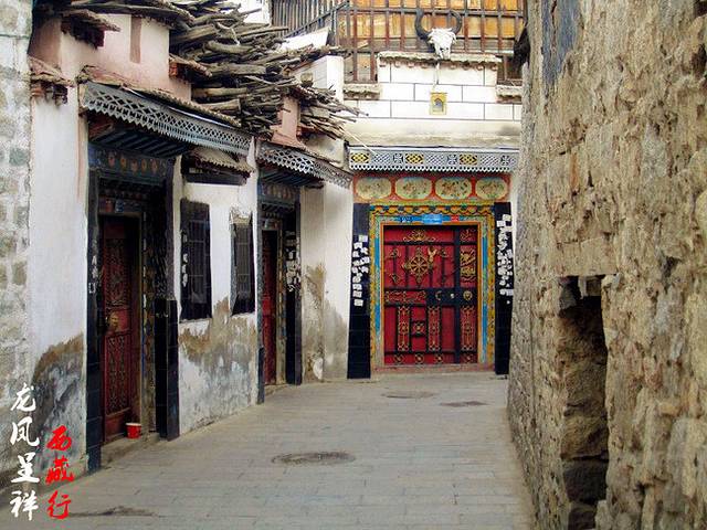 八廓街一景,石头房,绚丽的门饰,羊头,柴火,每一处细节都充满了藏风,原始而高贵。