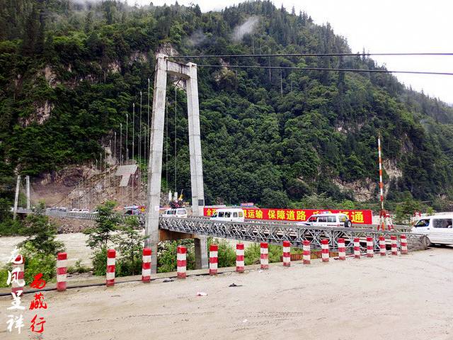 通麦大桥,单行。13年暑假我们刚从西藏回来时坍塌了,现在修了新桥。