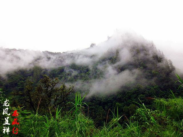 比日神山半山腰俯瞰八一镇:云雾缭绕,山峰若隐若现,宛若仙女朦胧羞涩。