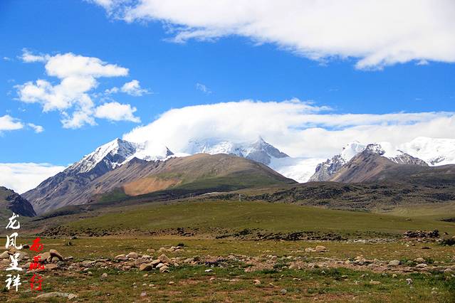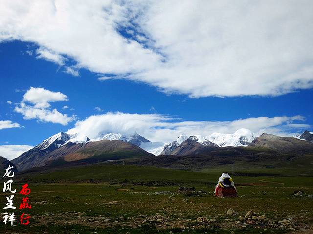 唐古拉山脉——蓝天白云,雪山草地,哈达经幡
