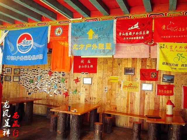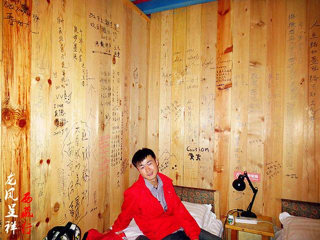 青年向我们介绍了兄弟客栈,并直接送到客栈门口。多人间只剩一个床位,我俩就要了个双人间,120元。在露台和两同龄人扯聊并相约一起吃饭。在街上晃悠半天也没找到如意餐厅,却碰到另一波也是住在兄弟客寨的友友们,热情的邀请我们一起聚餐,大家很快就聊得火热起来,各种开玩笑,吵吵闹闹中吃光了所有菜,几乎盘盘空,大家豪爽的性格让人在一起很痛快。最有特色最贵的一道菜是藏香猪。不过我貌似没吃出它的与众不同来,呜呜哇。快吃结束时他们开始商讨明天徒步的事宜,由于我俩并没有此计划,对他们的谈论是是所云。不过那刻起,我已默默决定明早要一块走了。回到客栈我与朋友商量着改变计划,不去直白村观景台了,去徒步好了,并告知领队杨哥我俩明天一块走,杨哥说可以,也很直接的告诉我们所有责任自负。在街上的小商店里买了点干粮(面包都是假冒伪劣食品呀,真坑爹,庆幸的是红牛还是原来那个味。我俩把没吃的食品从派镇一直背回拉萨,最后留在了客栈床上作纪念)。晚上又因为是否要徒步我俩起了争执,他说太危险,我却不以为然,说什么也要去,“你不去就在这玩两天回头拉萨再见”。最终不欢而睡,躺了会他吭声同意我的决定。其实我知道他不会让我一个去,只要我坚持他一定会同意,这就是我对他的了解。对即将的徒步我俩很茫然,一无所知,只知道夜深了该睡了,明天要早起出发啦。