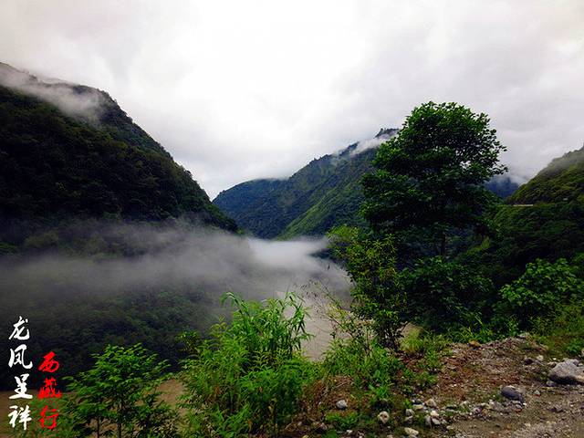 放眼望去,万物经雨水的洗礼,更加清新亮丽。云雾缠绕在半山腰,胜似仙境。昨日清澈见底,平缓如镜的尼洋河今天已是激潮澎湃,浪花飞溅。河中裸露的灌木林争相怒放,花枝招展。