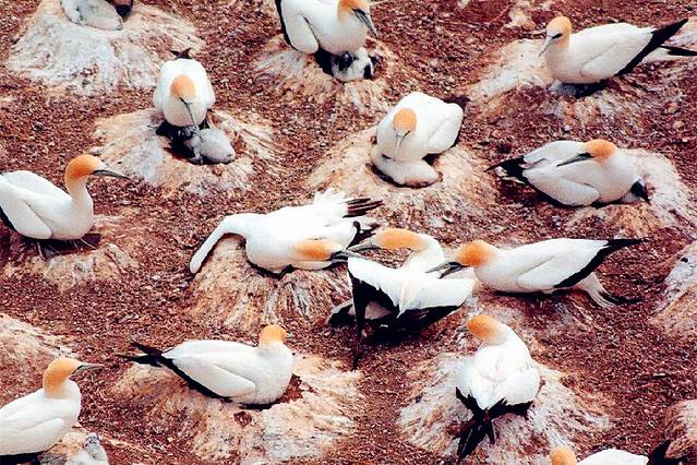 我们俗称Muriwai Gannet Colony为鸟岛,因为这里生存着很多塘鹅、海鸥和其他海鸟,所以直接称呼鸟岛更加简单亲切。鸟岛离市区大约一个小时左右的车程,因为是在新西兰的西部海岸,所以两大特点少不了,那就是大风和黑沙滩。每次到鸟岛,都能看到冲浪的人们。我第一次踏上黑沙滩也是在鸟岛,总是感觉在亮晶晶的黑沙中有神秘的宝藏,很有一种让人想探究一下的欲望。所谓鸟岛,其实是岸边高高耸立于海中的两块大岩石,岩石顶端是很大的平面,上面满是塘鹅,每年8月到次年3月有大约1200对,非常壮观。在观察这些美丽的生灵的同时,不禁感叹在如此风大浪高的地方生存的体验和意义。鸟岛所在的西海岸一望无边,巨大的风带动猛烈的浪,一定会给你带来某种感触。