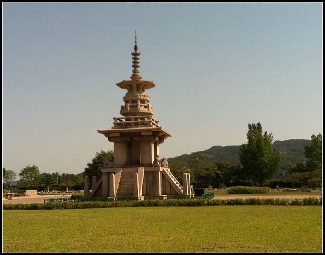 韩国面积比我们江苏还要小一些,面积1300平方公里的庆州,历史遗址主要集中在主城区,从巴士总站出发,徒步便能完成。我们正好住在巴士站附近的一个motel,午间小憩片刻,就冒着热辣辣的太阳出门了。