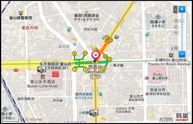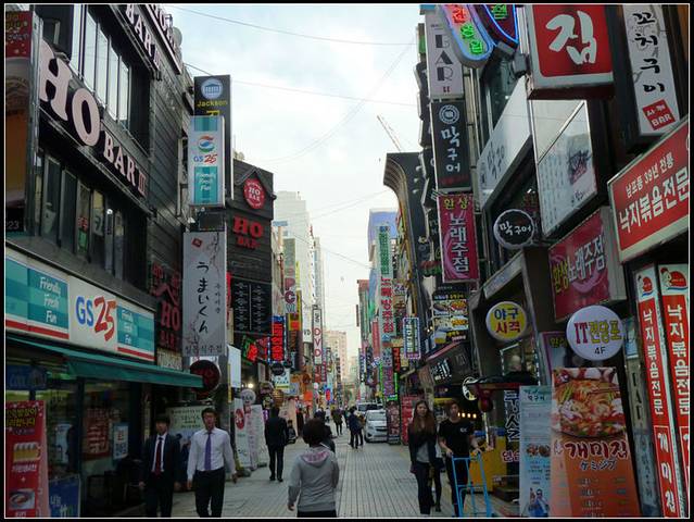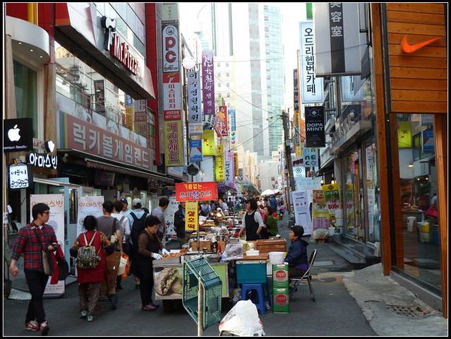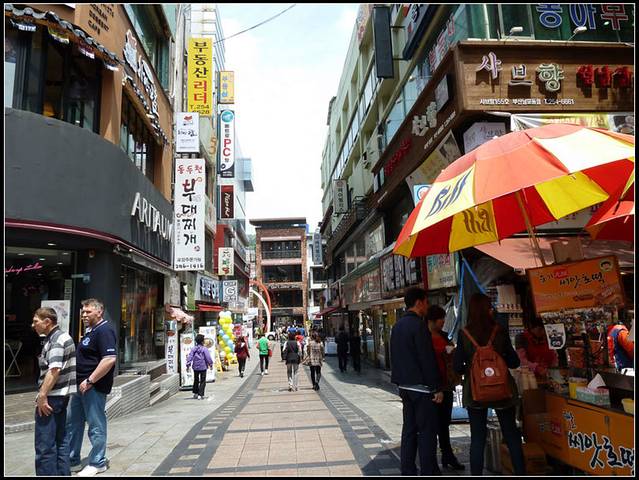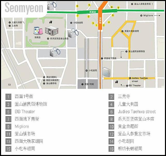 西面1号街(서면1번가)附近聚集了包括乐天百货店在内的各类店铺,是年轻人最喜欢的时尚地段, 也是釜山最繁华的商业区。虽非潮人,但我是带了详细地图来这里的,诚心诚意想来感受一份时尚一份繁华。