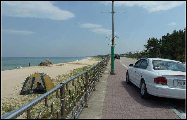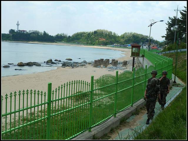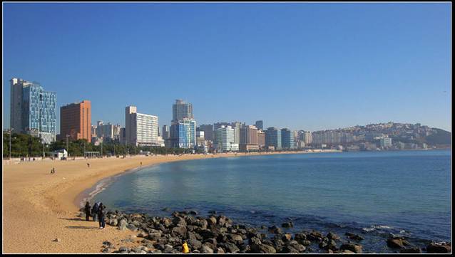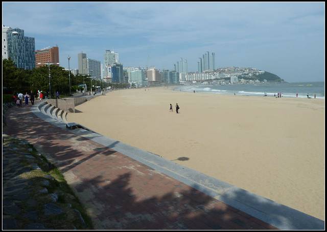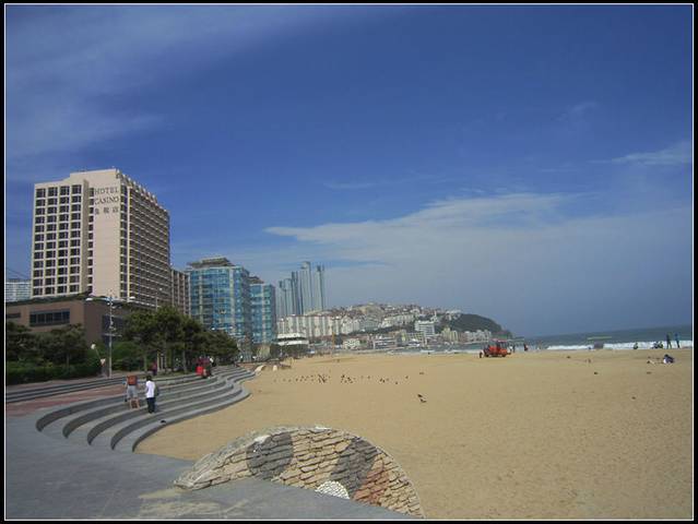 安静的海云台是韩国八景,海水清澈透明,沙子细软舒适,看上去和青岛、威海的海滨浴场相比似乎也没有什么特别之处,但是,但是,沙滩非常干净,看不到一片纸一个矿泉水瓶子。