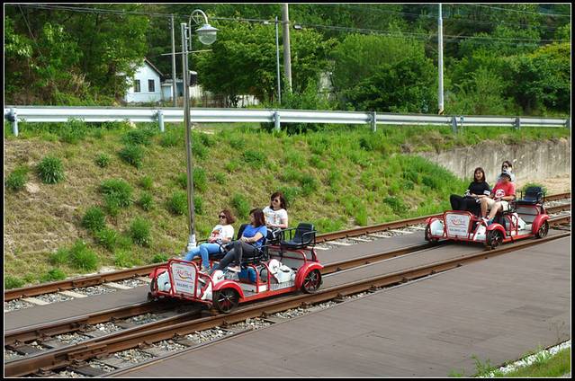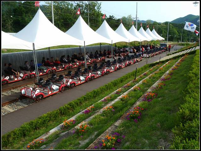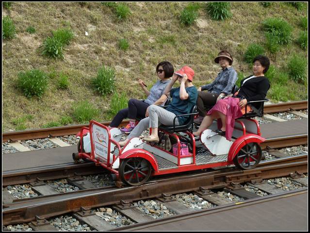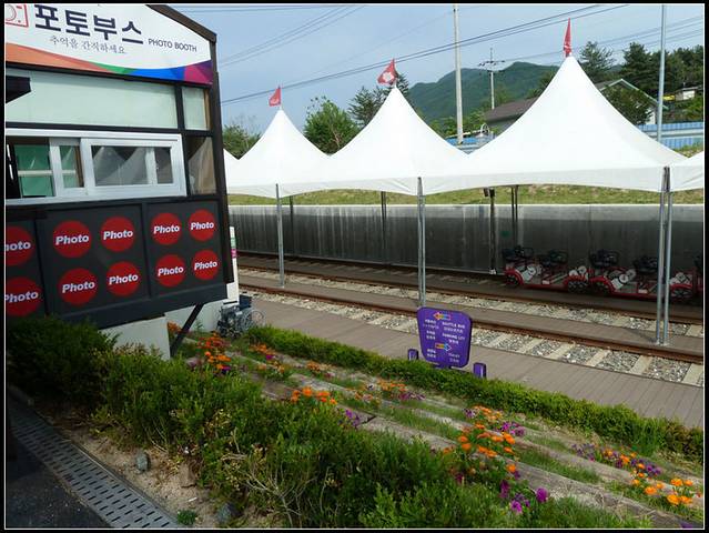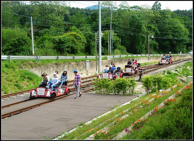 铁路自行车项目可以线上预约,但只提供韩语服务。预约时间为每两小时一梯次。金裕贞和江村站的路线为单程,但提供免费巡回巴士接送游客回原出发站。最好选择金裕贞站为起点,从金裕贞站出站后只需走100米就到了出发地。当然,如果有时间体力够意犹未尽,也可以往返。单程骑车的时间差不多是一个半小时。