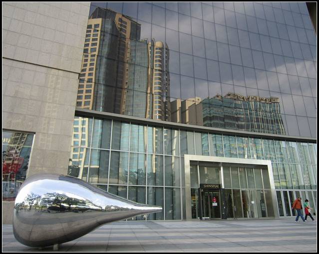 釜山的新世界百城(Centum City)是世界上最大的杂货店,顾名思义,我以为在这里能够买到我想买的商品,比如,国内看不到的有创意的好玩的但又实用的家居用品,谁让自己跻身于家庭主妇行列了呢?满含希望进了店堂,闯入视线的却都是似曾相识的名品:CHANEL,GUCCI, HERMES, LOUIS VUITTON,等等。7层是生活馆,家电和生活用品琳琅满目,倒是有不少国内没有的,但一个个价格标签明白无误地告诉你,只能近观不可亵玩。