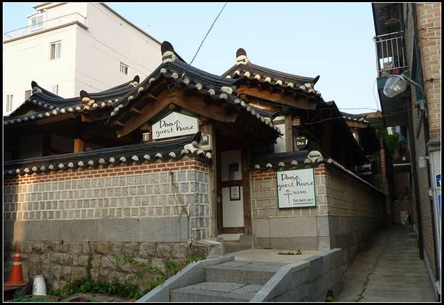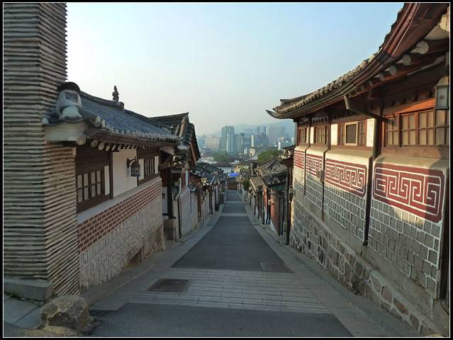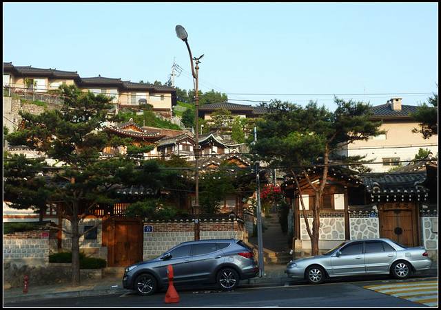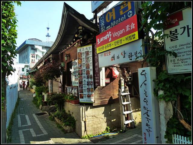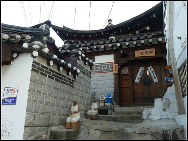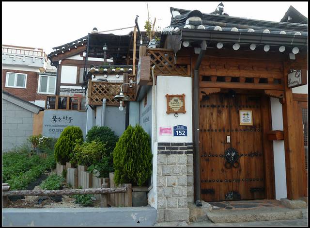 我没有去北村韩屋村。一来看过介绍,那里的路根本不适合我,二来,已经在春川住过韩屋了,亲身的体验总会走马观花来得强。我就赖在客栈睡了个懒觉,我爱人独自前往。离这里不远,步行也就十来分钟吧。