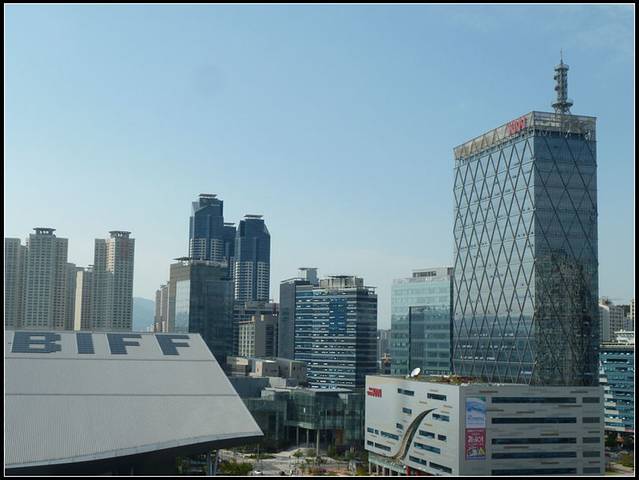 BIFF(Pusan International Film Festival)广场,我想到的自然是釜山国际电影节,以为这里和戛纳的蓬皮杜广场一样,在电影节宫前面那条著名的星光大道上,是一排排印有明星手印和签名的瓷砖,而在路边,有典雅的建筑、别致的广告灯柱和不时经过的个性男女。昨天晚上打车来酒店从此经过,但见灯红酒绿流光溢彩,既时尚又热闹。
