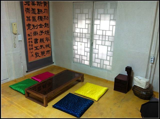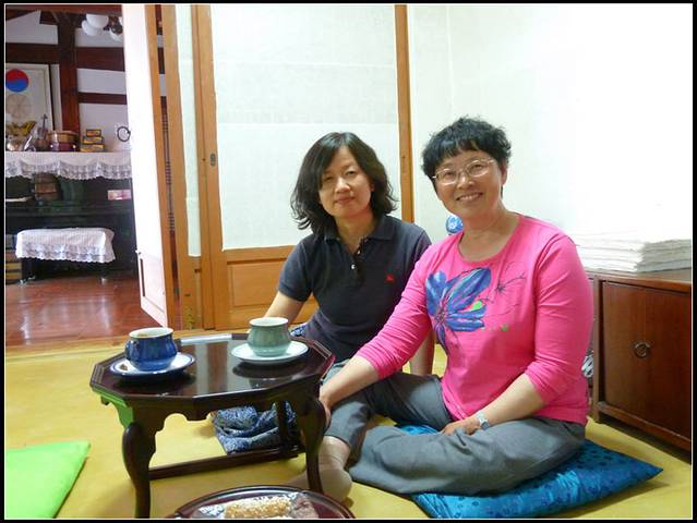 也就开了十几分钟,我们来到这座古宅前,大门打开,一个小男孩朝我们深深鞠躬。女主人奉上茶点,请我们品尝自制的枣子茶,冰镇的,凉丝丝的甜沁入心脾。大家坐在一起聊天,感觉就像是到亲戚家串门。男主人十年前去过北京学过汉语,可现在已经不能讲完整的中国句子。女主人知性、优雅,在一所大学教法律,英语水平和我差不多一个等级。韩语、中语、英语,再借助于夸张的肢体语言,交流还算顺畅。