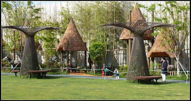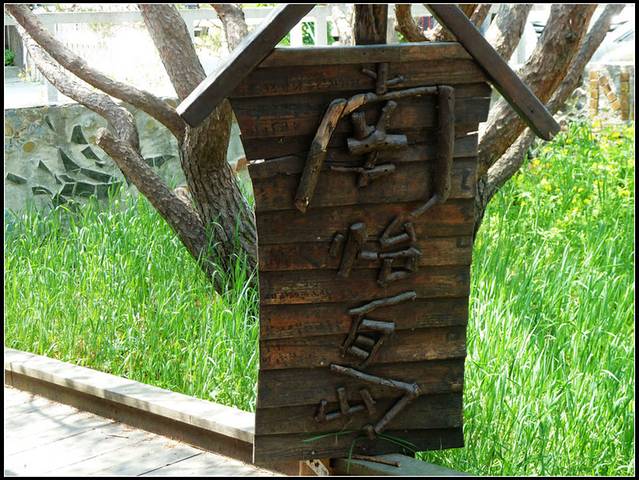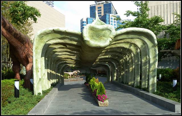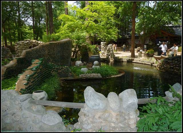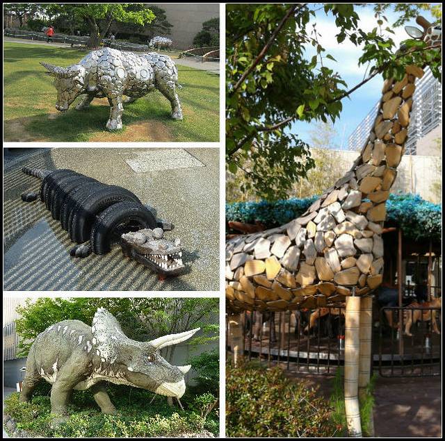 牛、鳄鱼、三角龙、长颈鹿,用铝片、轮胎、树皮、木片做成,环保的理念、废物的利用,或许是这个主题公园给我们的另一种思考。