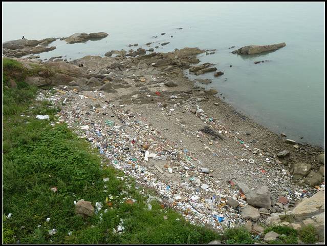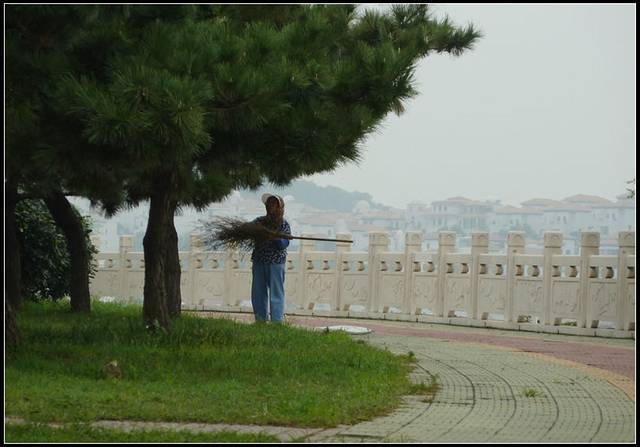 中国一万多公里的海岸线,不知道有几个如此干净美丽的海滩。印象中,国内的海水浴场总是闹哄哄乱糟糟脏兮兮的。在连云港的海边,我亲眼看见过环卫工人把扫起来的垃圾随手倾倒在防洪墙外的礁石上。呶,翻箱倒柜居然找到了照片,证据确凿,我没有恶意诋毁。