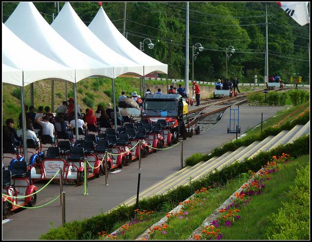 我去游客中心买车票,可是工作人员只会韩语,从她们的表情和手势看,好像今天不发车。我觉得不可理解,反复用英语问为什么,后来其中一位用笔在纸上写下“日曜日”和“雨”,好在我20年前参加高等教育自学考试为了获得学位二外选修了日语,虽然现在基本忘光,但“日曜日”还是知道的,至于“雨”的意思那就不用说了。但即使如此还是没闹明白昨夜下雨和今天观光车停运到底有神马关系,看再问下去对双方都是折磨,ありがとう,감사합니다,3Q,转脸走人。