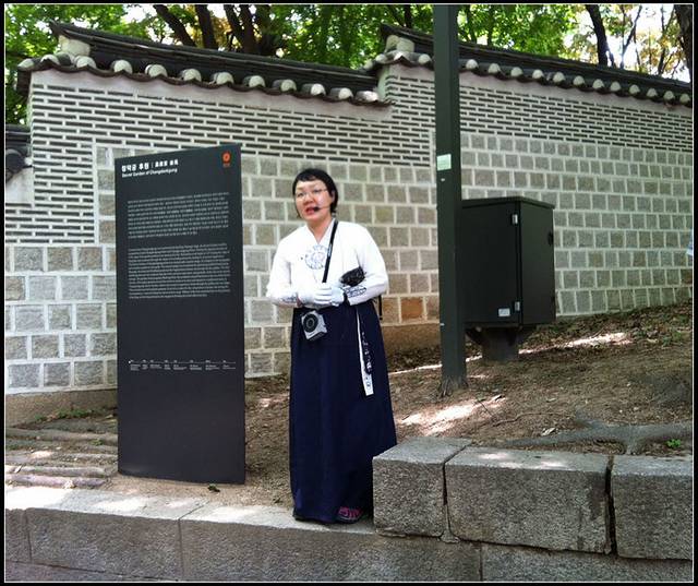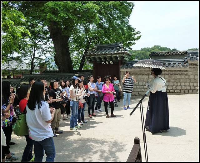 尽管同时又被称为“秘苑”、“禁苑”的后苑以前一般百姓不能近前,但我预约这场中文解说并不是想打探皇帝及妻妾的私生活。文化观光讲解员由首尔政府组织,由会说外语的退休公务员或导游免费向海内外游客介绍首尔的历史、文化、自然等知识。在欧洲、在中国都没有这种服务项目。