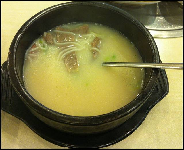 千万别以为这是吃了一半才拿起的相机,看看前一张照片就知道我不敢弄虚作假啊!汤多米粉少,我用筷子架空碗底才显山露水。同学看了照片深表惭愧,叹自己完全不了解思密达国情,如此袖珍的面条咋还育出金三顺那样的胖姑娘呢?