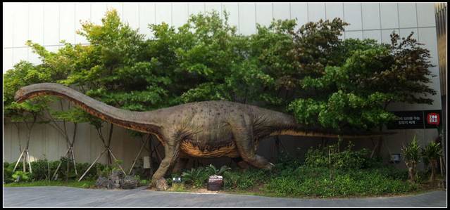 主题公园模仿侏罗纪而建,那个时代,恐龙成为陆地的统治者,公园进门处便用一条恐龙模型点题,红色的圆圈里是醒目的“ZOROAJI”白字。我为儿子拍下这张照片。小时候他画的恐龙栩栩如生,被老师和同学戏称为“恐龙先生”。他告诉我,这是“腕龙”