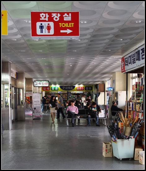 在韩国,巴士分为高速巴士和市外巴士两种,有时高速巴士站点与市外巴士站点不在同一地点。釜山就有两个巴士站,一个是西部市外巴士客运站(부산서부시외버스터미널;另一个釜山综合巴士客运站(부산종합버스터미널),是釜山地铁1号线的终点站。我们从仁川到釜山就是在这个站下的车。