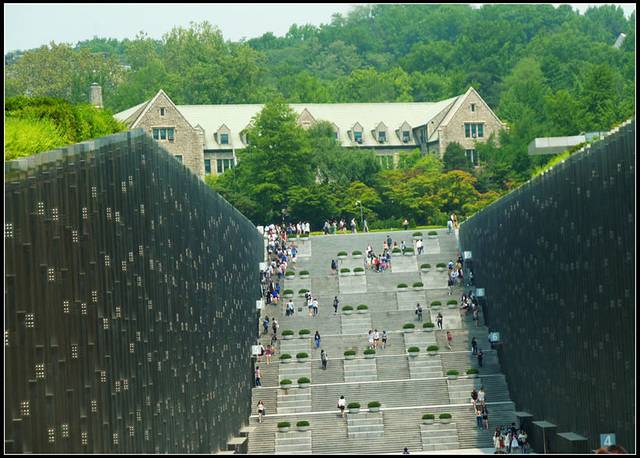 记得是在华盛顿还是哪里,有一座越战纪念碑,也是下沉式的,设计师是一个林姓华裔女孩,她的姑母和姑父就是林徽因和梁思成。当时设计那座项目时林璎好像才20多岁。网上找一张图片对照一下。