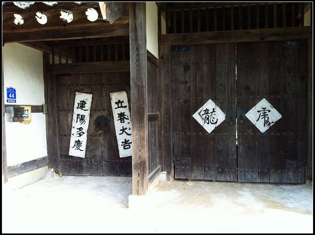 大门上贴着门联:立春大吉,建阳多庆。2月4日立春,韩国人的习俗是这一天要贴汉字对联。“立春大吉、建阳多庆” 是当天贴的最多的一幅,意思是立春时节已经到来,家中大吉大利;随着阳气的汇聚,希望家中喜事不断。