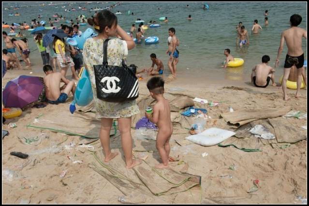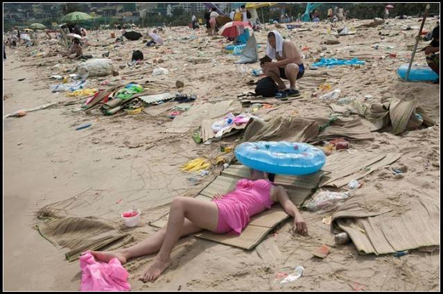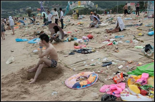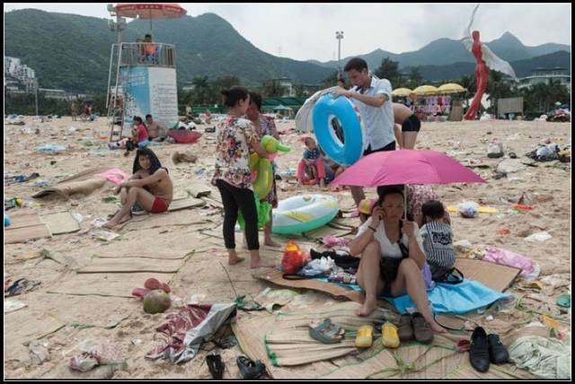 还有更为恐怖让人无语的,今年端午节的深圳大梅沙海滨浴场。