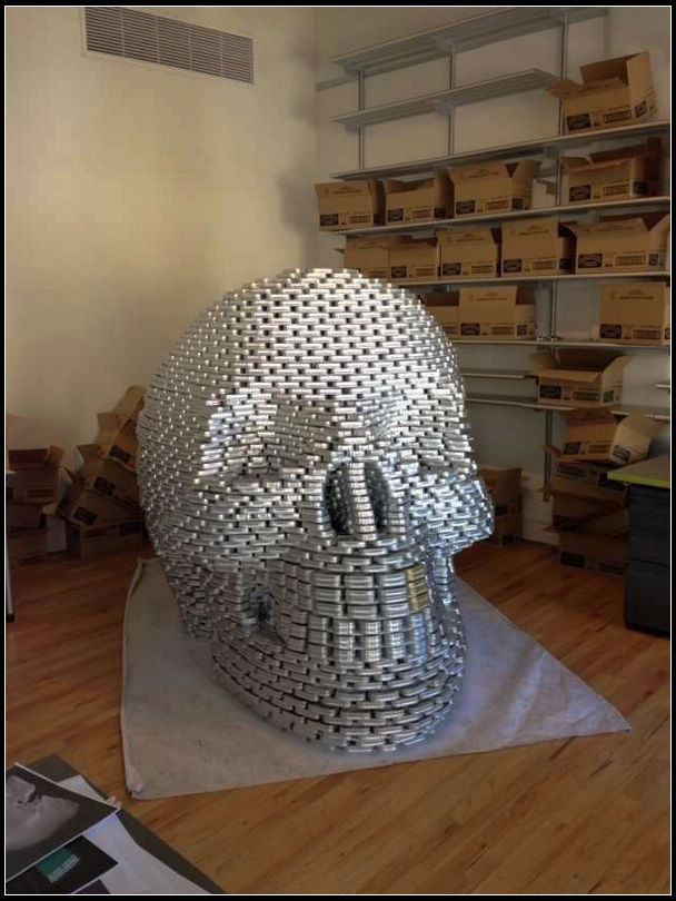 这个用易拉罐做的骷髅头丝毫不显可怕,引得许多游客莞尔一笑。
