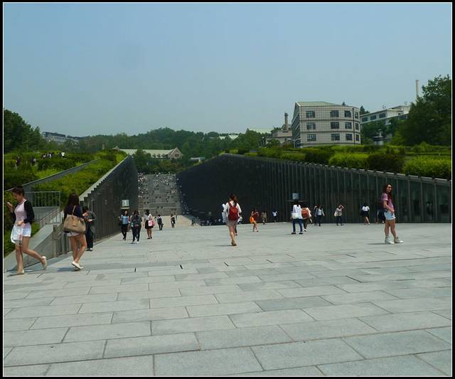 韩国梨花女子大学(이화여자대학교)是韩国历史最悠久的女子高等学府。正门是开放式的,没有铁门也没有护栏这些设施,校园的美景吸引了众多游客。我们到的时候正是中午,校园里到处是行色匆匆的女学生,温婉时髦极具韩国特色,更多的则是手拿相机的中国女孩。