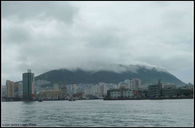 早晨的釜山海边,空气还是湿漉漉的,带着浓郁的海腥味。远处的山和开普敦的桌山仿佛孪生,山顶的云也像一张台布。