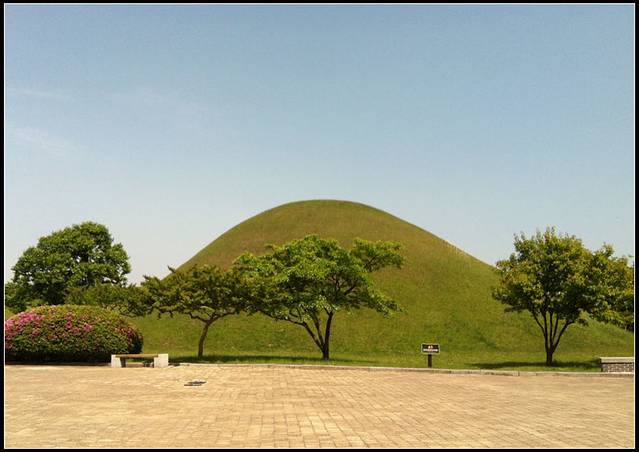 大陵苑(대릉원),又称“古墓公园”,古墓中安眠着23位千年前新罗时代的王公贵族。因为没有墓碑,考古学家无从确认这些古墓中安眠着的王公贵族姓甚名谁。