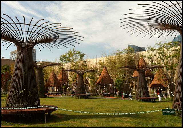 在相机里留下影像资料的是9层的 “ZOORAJI” 露天主题公园,这是商场为购物游客提供的天棚式的休息空间。漫步在小木屋间,呼吸着新鲜的空气,眺望釜山的街景,恍惚间,好像回到20多年前,节假日总会带孩子去这种地方。