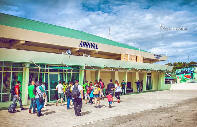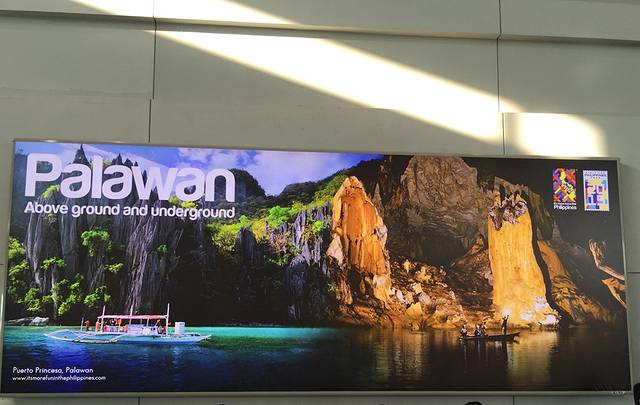 夕阳的一束投射在机场的巴拉望旅游广告上