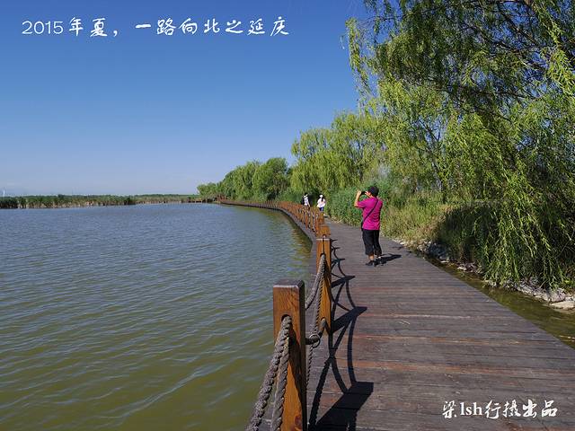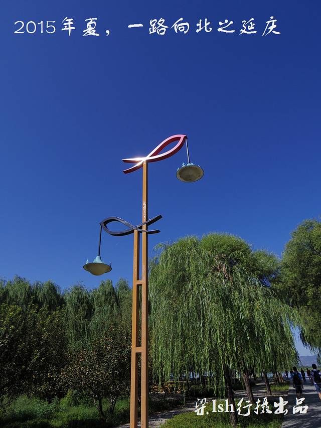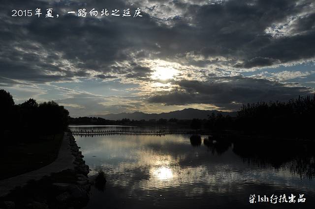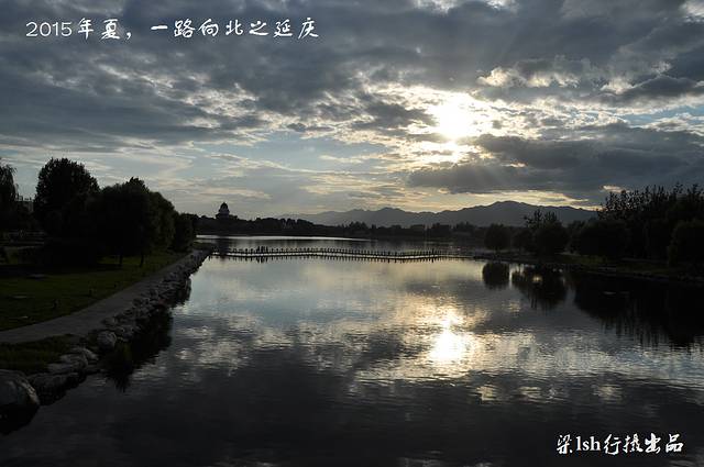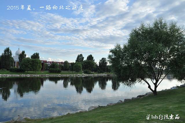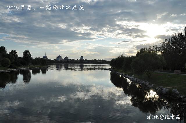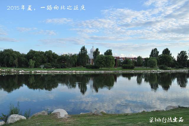 夏都公园是在流经延庆县妫水河上游挖湖建造而成,整个公园水面宽阔,波光粼粼,绿树成荫,远处岸边异国情调的建筑林立。