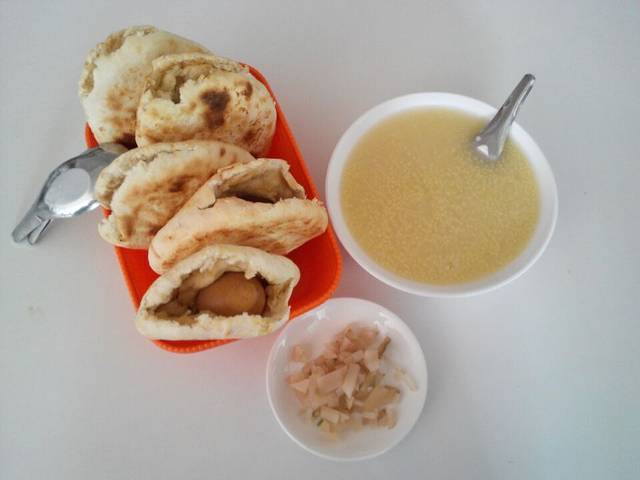 有没有看到,里面夹的是卤鸡蛋。第一次这样吃。