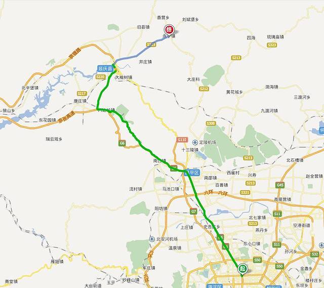 线路推荐1:北京——京藏高速——成营子出口下高速——延庆县城——永宁镇——刘斌堡乡——南湾村——四海镇珍珠泉乡——滴水壶景区——千家店——白河堡水库——宿延庆县城
