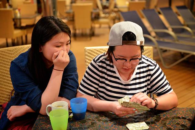 吃完后我们就开始找活动了,这里是在玩21点~船上每天有点各式各样的活动,每天早上你都会受到一个活动安排表,你可以看几点钟你可以去哪里参加什么样的活动~
