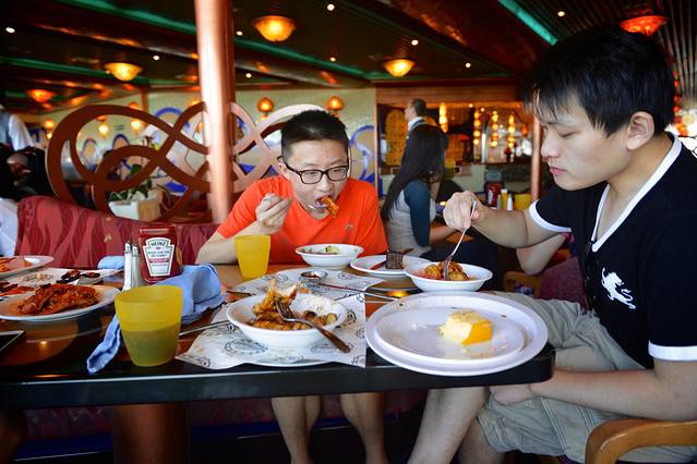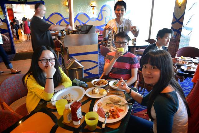 安顿下来,听完安全指导就迫不及待的集合奔向甲板层的餐厅,一顿猛吃,这时候都三点多还没吃中饭呢