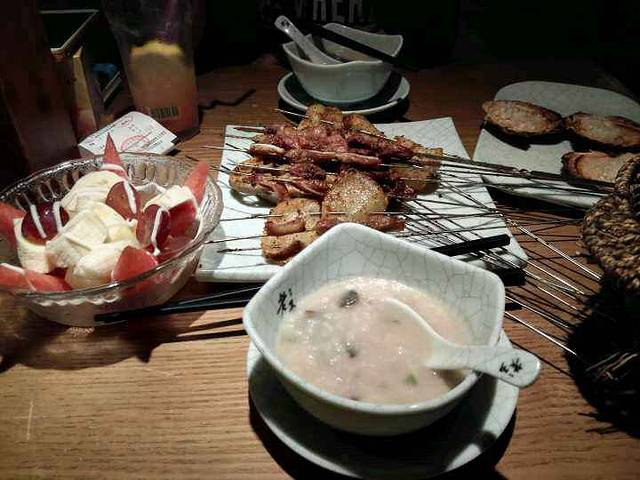 然而我们去的是中山公园那边 开始以为叫老五烧烤王 被百度地图指到了另一个地儿啊嘤嘤嘤 后来又打车去了中山公园 找了好久QAQ 两个小时才吃上 不过确实好次!特别推荐波子水真的好好喝啊!!鸡翅最爱更不用说 我们2个人消费了128在美团上打折后少了13 皮蛋瘦肉粥吃饱了以后才喝。。感觉不到什么味道了 20多块钱一大份 最后打包了~反正好评!