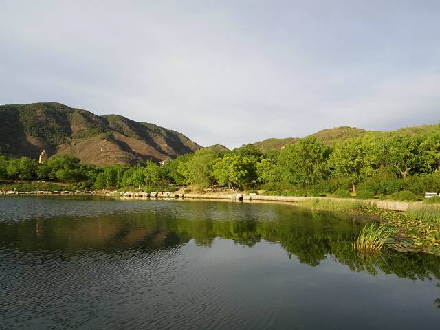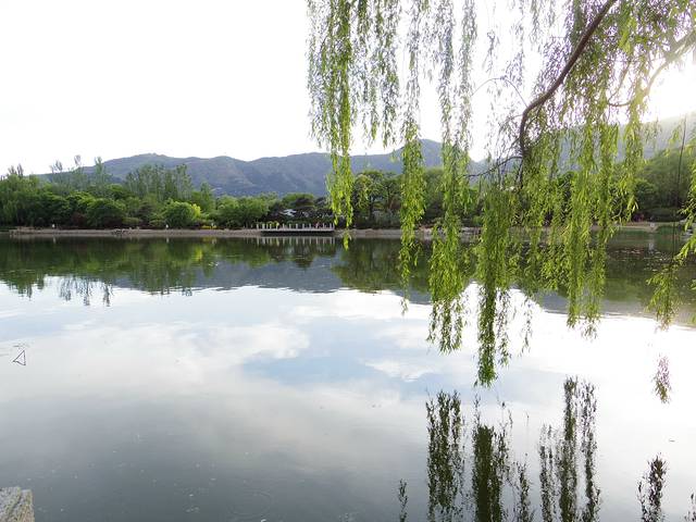 北京植物园的湖面不大,但山青水秀,在蓝天白云的映衬下,细细欣赏水中倒影,更是别有一番韵味。