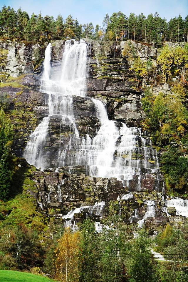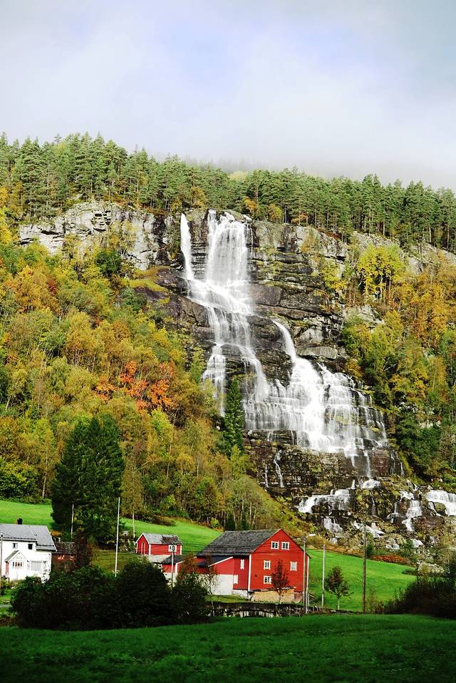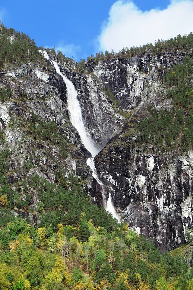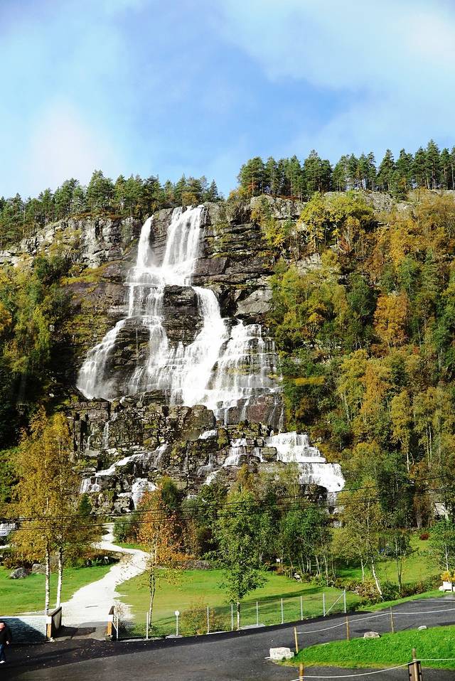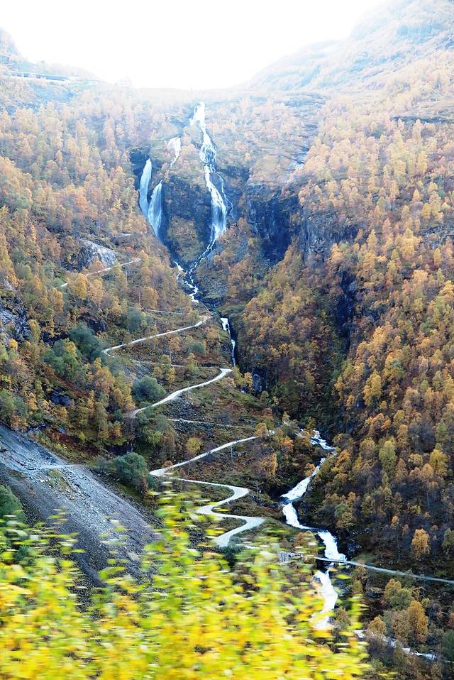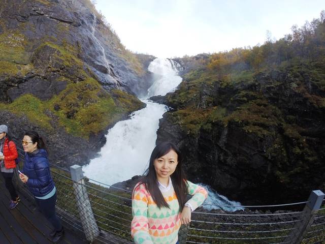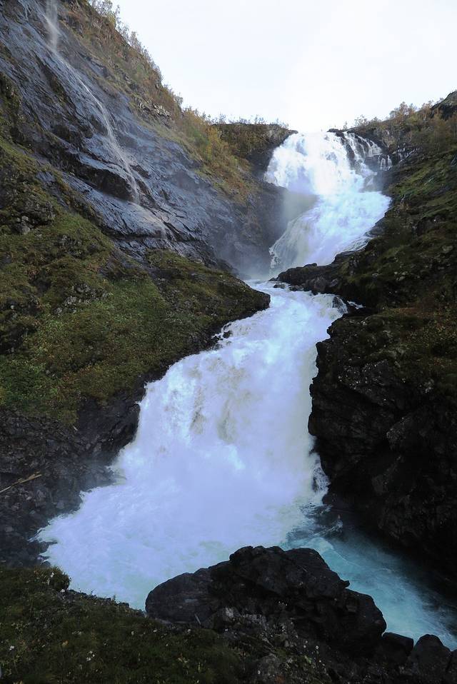 Kjosfossen瀑布是弗洛姆铁路线上一处著名景点,落差94米,火车会在瀑布前的平台上停留几分钟,方便游客拍照
