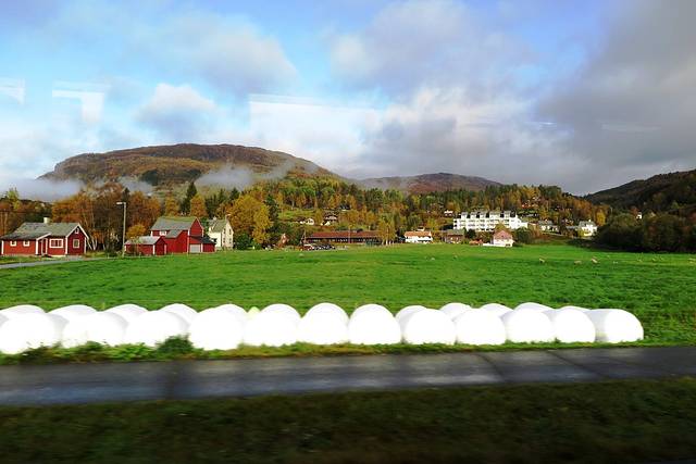 另外提醒一下,整个行程只有这一段火车是对号入座的,我们因此还闹了笑话,被人家从位子上赶了出来。这一段因为正对的玻璃窗特别脏,所以没拍什么照片,加上天色渐暗,一整天高强度的游览的确有点累了,正好小憩一会儿,晚上22:45抵达奥斯陆火车站。