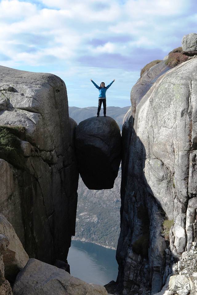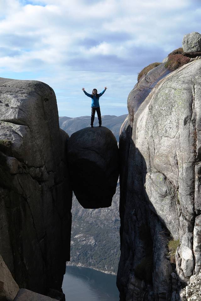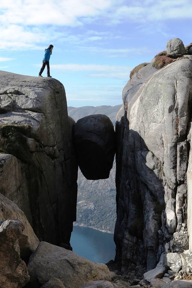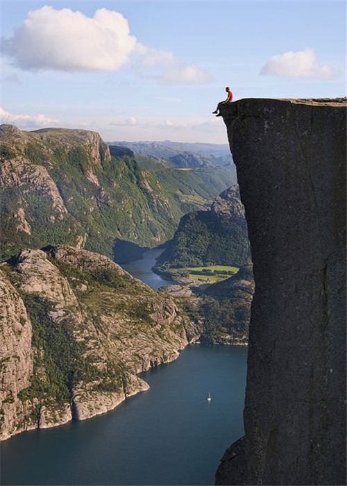 布道石地处挪威南部,靠近斯塔万格市的吕瑟峡湾中部,是一块天然形成的巨石,突兀地直立于峡湾深处的崇山峻岭中,垂直落差604米,顶部有大约625平方米的平台。站在平台上,可以俯瞰吕瑟峡湾(Lysefjord)。它是勇敢者的标志,荣登了全球最惊心动魄景点TOP榜。有些风景,注定只属于少数人:那些不惧艰难、一路向前的人;那些独具匠心、不走寻常路的人;那些勇往直前、热爱自然的人。
