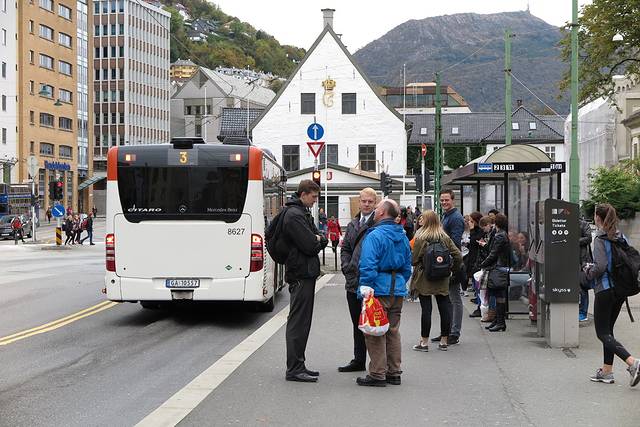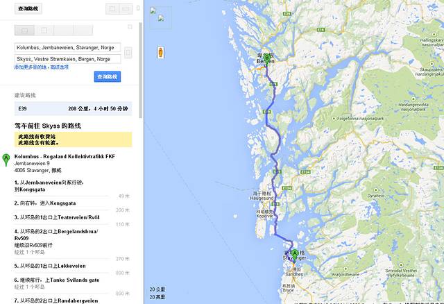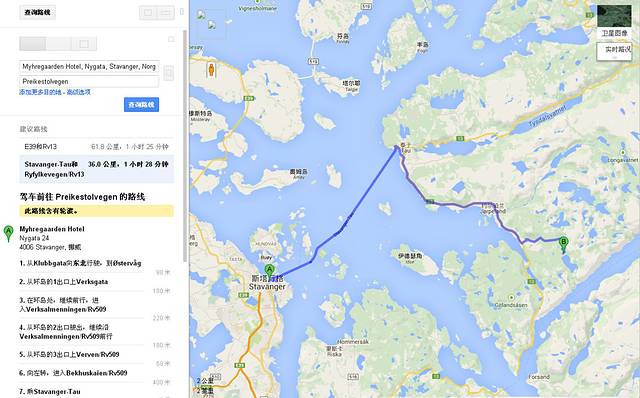 我们此行主要是以公共交通为主,但是去奇迹石的公交到9月上旬就结束了,因此只在斯塔万格租了一天车,市区只有Herz有网点,租车需要驾照和翻译件。挪威租车后,一般车上都有Autopass的芯片,会自动缴纳过路费,车通过缴费路段的时候,会有个绿色十字灯闪亮,表示交费了,费用最后算在账单内,很方便。去奇迹石的路上有2段是要收费的。网上说,如果是红色十字灯亮的话,就说明没装芯片,需要3天内自己去付款,否则会被罚款的。