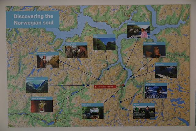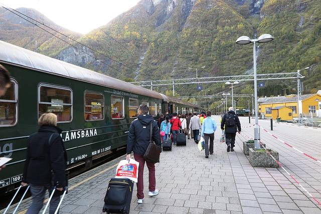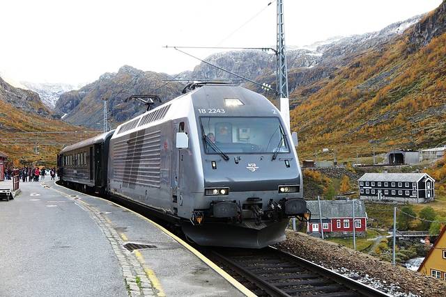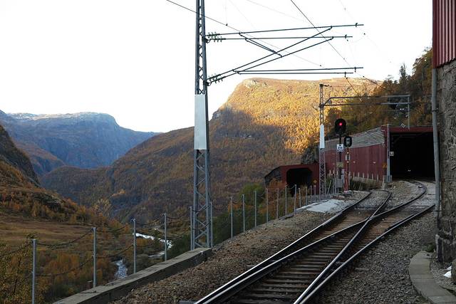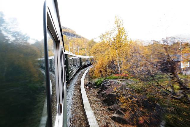 弗洛姆铁路是世界著名的旅游铁路和登山铁路。这条始建于1924年的铁路支线将海拔2米的峡湾小镇弗洛姆和海拔865米高的米达尔山相连接,全长20公里,海拔相差863米,坡度相当大,修建难度也很大,是欧洲最有影响力的山区铁路之一。弗洛姆小镇也因弗洛姆铁路而闻名遐迩,小镇人口虽然不到400,每年却有40万游客前来这里。